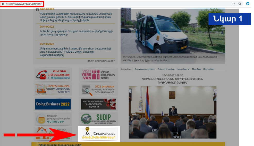 On the main page of the official website of Yerevan Municipality, there is a "Construction Permits" window, after clicking on which a new window opens